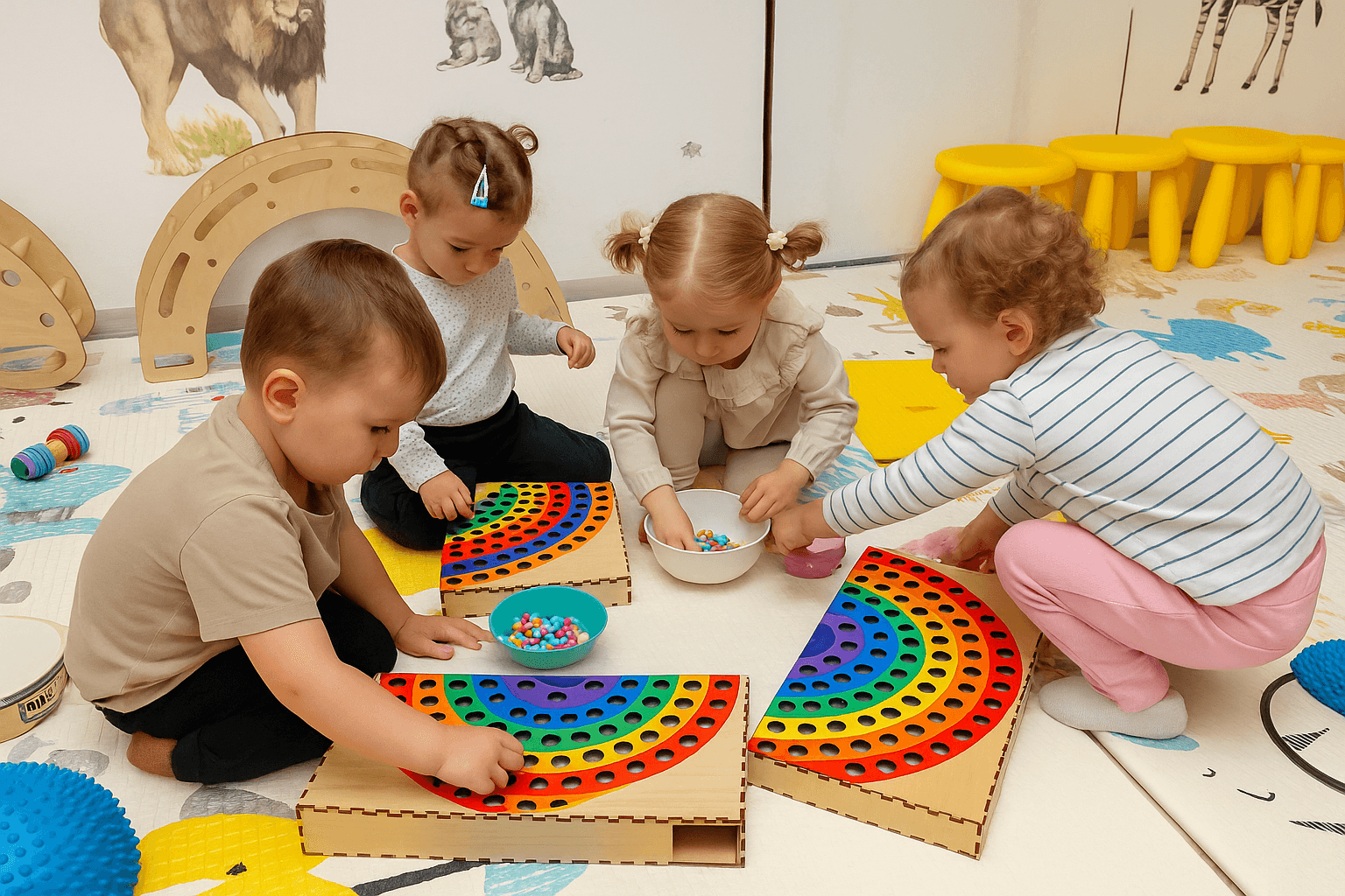 “Курс «Світ грою – я сам!» спрямований на соціальний, емоційний та когнітивний розвиток дитини. Тривалість заняття: 60 хв Кількість дітей у групі: до 5 На заняттях ми: розвиваємо дрібну моторику; виконуємо нейрогімнастичні вправи; проводимо різноманітні дидактичні ігри, які стимулюють мислення та увагу;формуємо розуміння часу, частин доби, рахунку та багато іншого. Запрошуємо ваших малюків долучитися до світу гри та розвитку разом із нами! ”